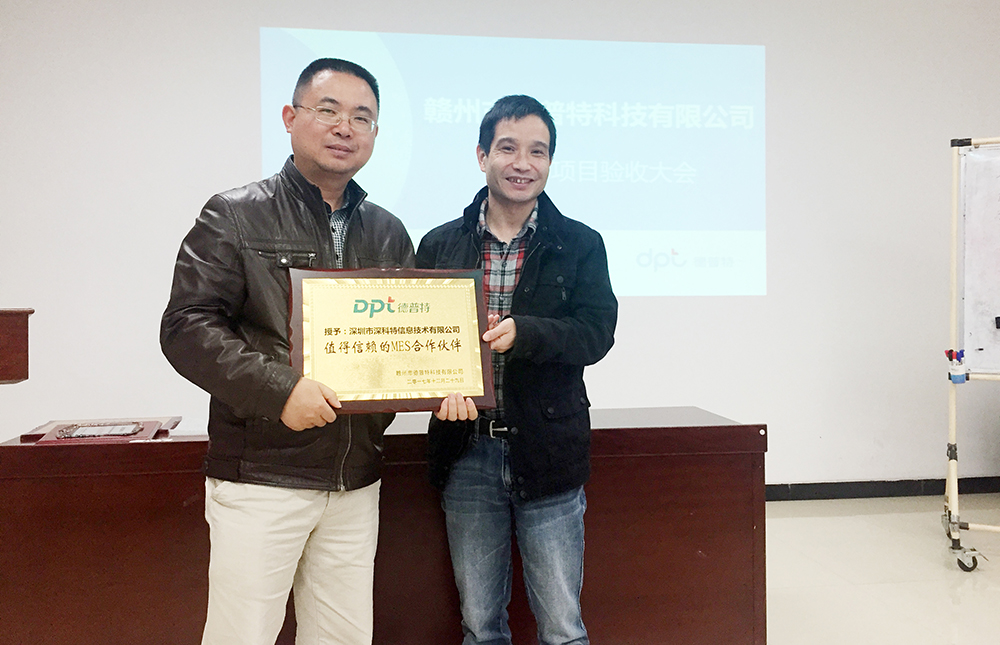 ? ? ? ? 結案會上,贛州德普特對于深科特的專業及實施能力表示欣賞,授予深科特實施團隊“先進團隊”稱號,是對我們產品及服務的巨大肯定。