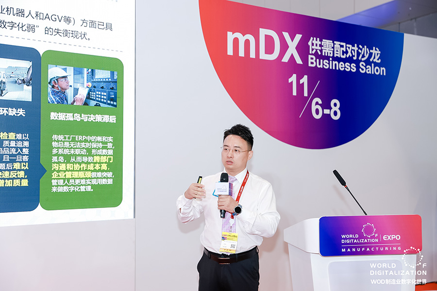 本次沙龍是 WOD 展會核心配套活動,以 “精準鏈接供需” 為核心,破解制造業 “單點轉型易、全鏈升級難” 痛點。深科特副總汪陽名在交流中分享了企業基于 MOM/MES 系統的一站式解決方案,結合 800 余家客戶實踐經驗,詳解從生產執行、智能倉儲到質量管控的全流程數字化落地路徑,強調 “精益化 + 自動化 + 信息化” 深度融合的重要性。